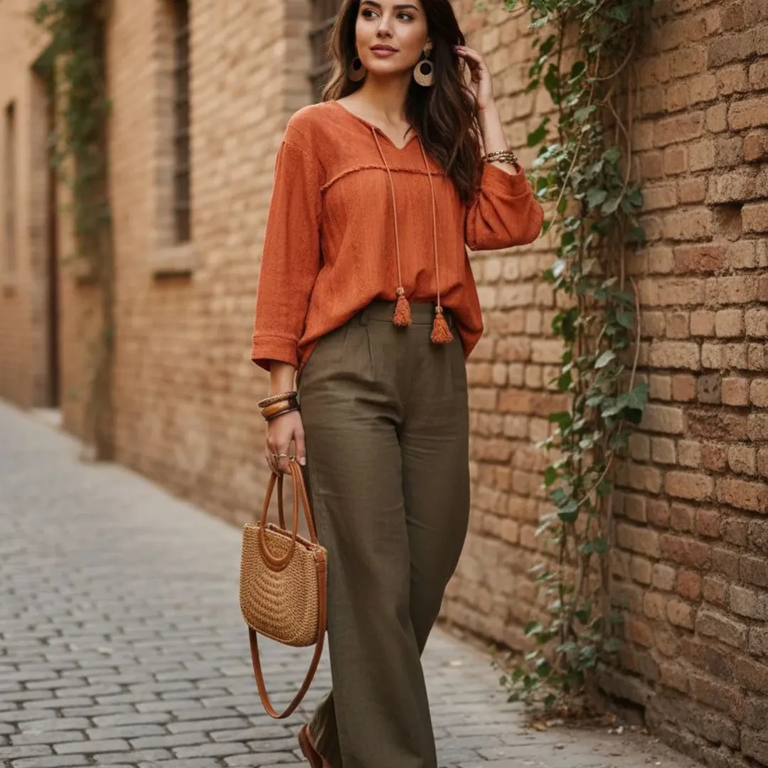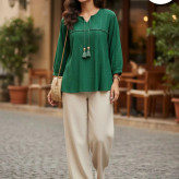 متاسفانه این کالا در حال حاضر موجود نیست. میتوانید از طریق لیست بالای صفحه، از محصولات مشابه این کالا دیدن نمایید.بلوز مراکشی، نماد راحتی، خنکی و استایل شیکِ بوهو هستن. این مدل جدید با بافت زیبای شیشهای و آویزهای جذابش، انتخابی ایدهآل برای هر سنی و هر موقعیتیه: جنس فوقالعاده: کاملاً خنک و سبک، مناسب فصلهای گرم و معتدل. کیفیت بافت: طرحهای درشت و ظریفِ کار شده روی پارچه که حال و هوای اصیل مراکشی رو به استایلتون میاره.